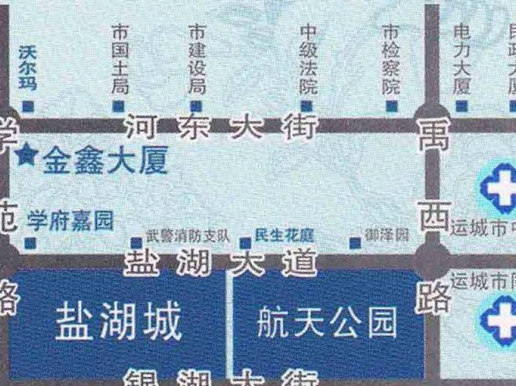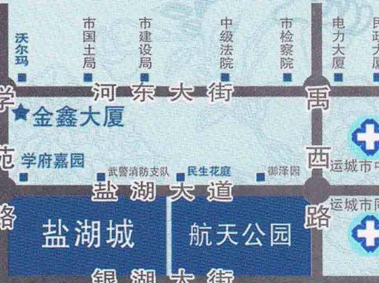 商场:中央广场,商业金街,沃尔玛 公园:盐湖公园 航天公园 医院:中心医院,同德医院 其它:名牌幼儿园 运城学院 学院附中
