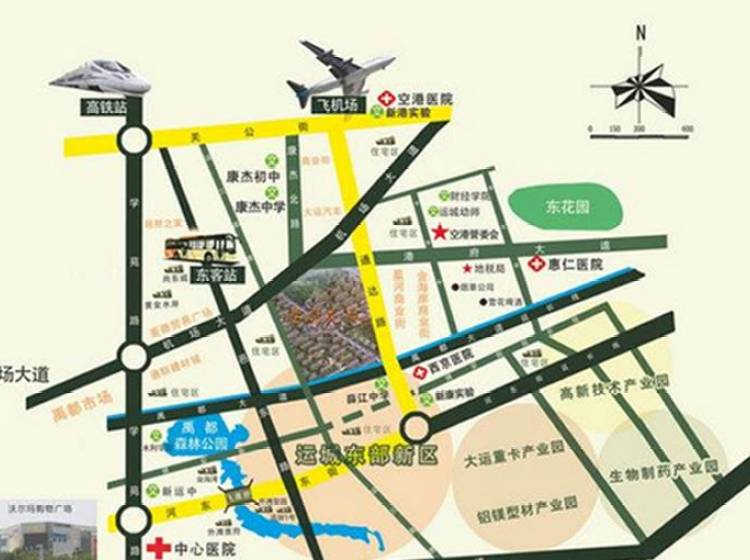 薛辽中学,新康实验,西京医院,沃尔玛,新中心医院,星河商业街,在建的大型城市综合体。 学校:蒙特梭利(98米),空港国际幼儿园(535米),育秀幼儿实验园(602米),北京博苑阳光幼儿园(722米),康杰初中(805米),康杰初中(东北一门)(806米) 购物:诚信超市(222米),海红超市(296米),妞妞综合超市(308米),兴隆超市(363米),福鑫源超市(419米),易捷便利店(空港小区东北)(422米),永兴综合超市(462米) 生活:农行ATM(287米),中国农业银行(关公西街)(289米),中国建设银行(运城机场分理处)(787米),中国建设银行24小时自助银行(运城机场分理处)(787米),邮政储蓄银行ATM(879米) 餐饮:王老三炸酱面空港店(584米),小武底张羊肉泡(604米),老大幸(631米),成都3.6.9自助火锅(640米),甘美饭店(雷达街分店)(646米),玖玖玖川菜馆(675米)