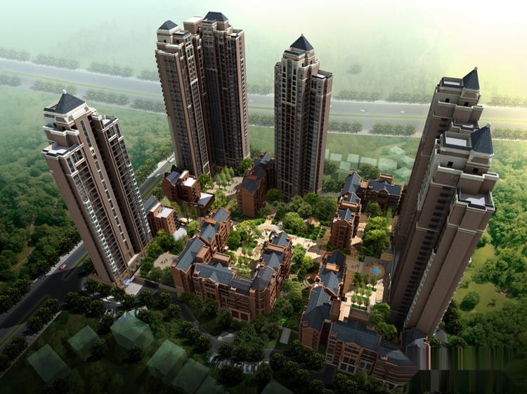 项目位于云浮市市区环市西路东侧大塱片区,南临富强路,距离老城区2.2公里,距市政府1.6公里,位于324国道东侧。该项目规划建设用地面积为32966.21平方米,总建筑面积为150344.8平方米,其中:地上建筑面积为115381.735平方米,地下建筑面积为34963.07平方米,居住人数3277人,总户数为1007户(每户3.2人计),共设有761个机动停车位,建筑抗震设防烈度6度。 项目为商住型住宅小区。由23栋住宅组成,6栋高层住宅和17栋洋房住宅,沿街商业位于1#~6#的一二层,社区服务中心和社区居委会设于6栋的二层内,文化活动站设置在20#21#的一层。整个项目立面造型力求体现城市特色,同时结合云浮的历史文脉,以稳重、大气为处理手法,创造挺拔、洒脱的ART DECO设计风格。半地下商业在设计上通过柱式,将塔楼与裙房有机连接在一起,将简洁的现代风格和新古典的整合 小区的人车分流设计充分考虑了无障碍设计,主要人行道线型畅顺,作为入宅构成院落内景优美、环境宜人的景观。路面坡度与地形变化一致,次要人行路在考虑盲道的前提下,局部设置踏步。