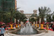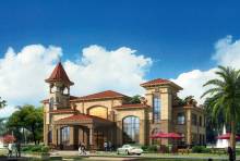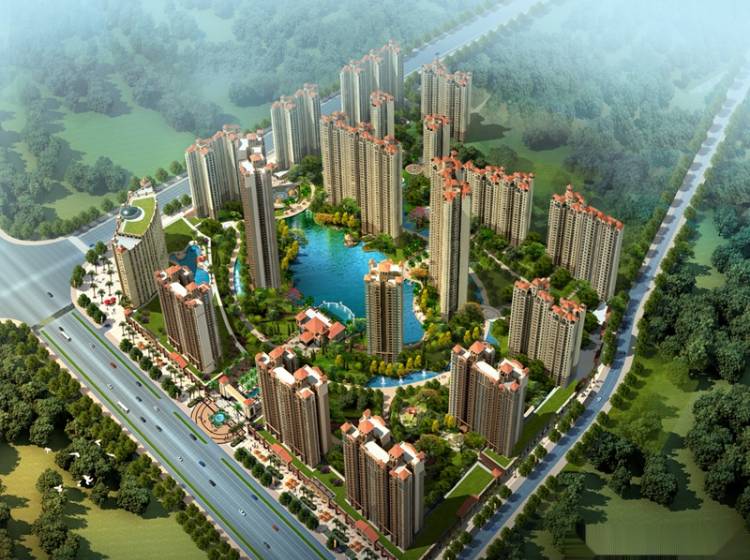 小区内部配套:小区内中央设一个8000多㎡的明珠湖为中心景观主轴,在其后附设游泳池;设计布局有75000多㎡中央集中和住宅房边的园林绿地;东北面建一座22层的星级酒店,前面设一个2500多㎡的活动小广场;在建筑造型上以西班牙风情为主要特征,东、西、北三面外围设步行街,沿街底层组合通廊的设计形成有异国风情的外向型商业空间,为居民提供一个购物、餐饮、文化娱乐、休闲消费的平台。