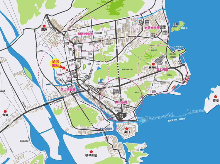 商业:诚丰广场、明珠商业广场(华润万家)、二城商业广场、乐士文化街区、金嘉创意谷、左右创意园、华发商都、前山世邦广场、旺家购物广场等配套。