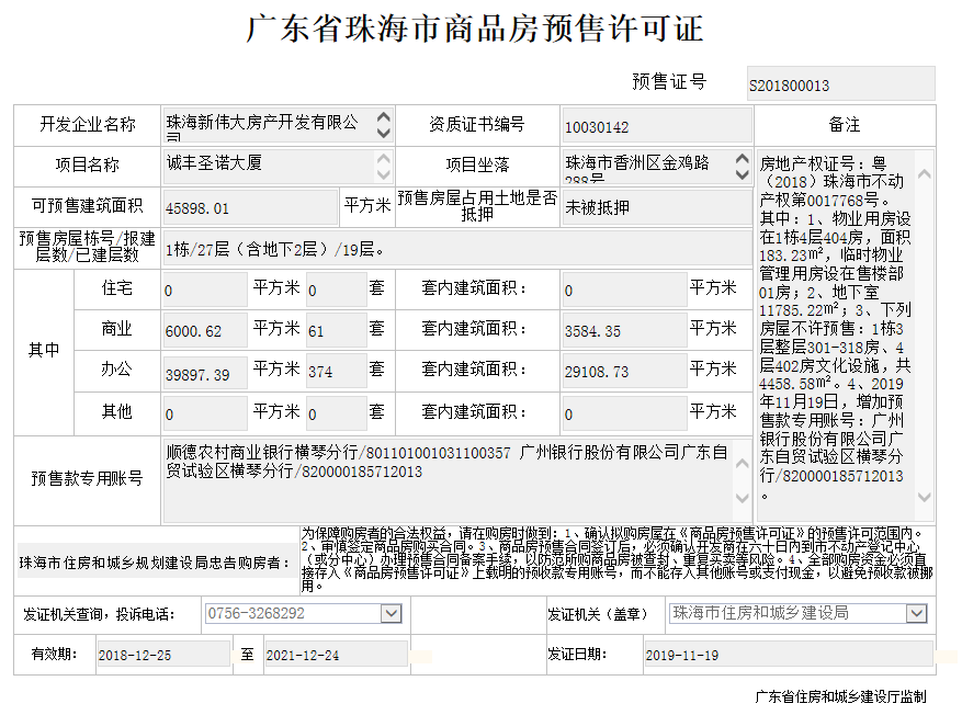 "诚丰圣诺大厦是诚丰集团继诚丰银座、诚丰星座、诚丰广场、希尔顿欢朋酒店之后又一商业项目力作,亦是诚丰集团5.0时代升级之作。项目位于珠海市香洲区内,造贝路与金鸡路交汇处,临近珠海与坦洲交界处,离南屏大桥仅约300米,踞轻轨前山站、明珠双站之间,南向单位俯瞰前山河美景,观景视野开阔,地理位置较为优越,纵享珠中双城融合红利。