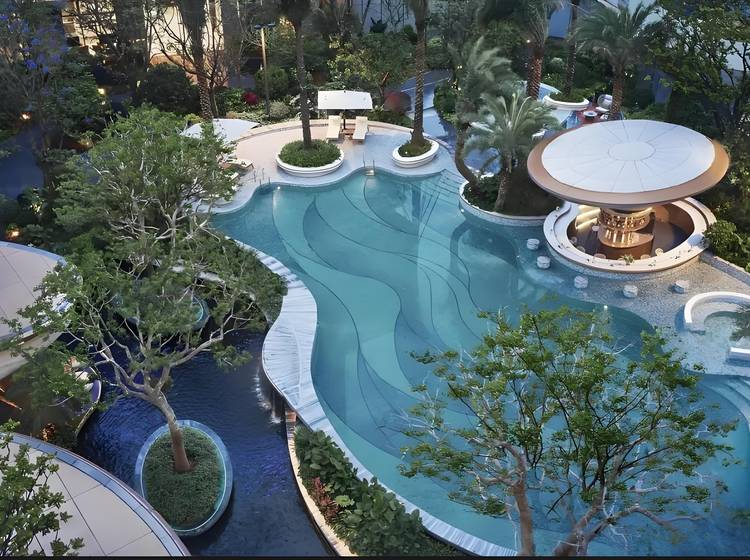 户外休闲更添精彩:室外多功能冲浪泳池,融合清凉畅游与动感冲浪体验,为您带来度假般的亲水乐趣。