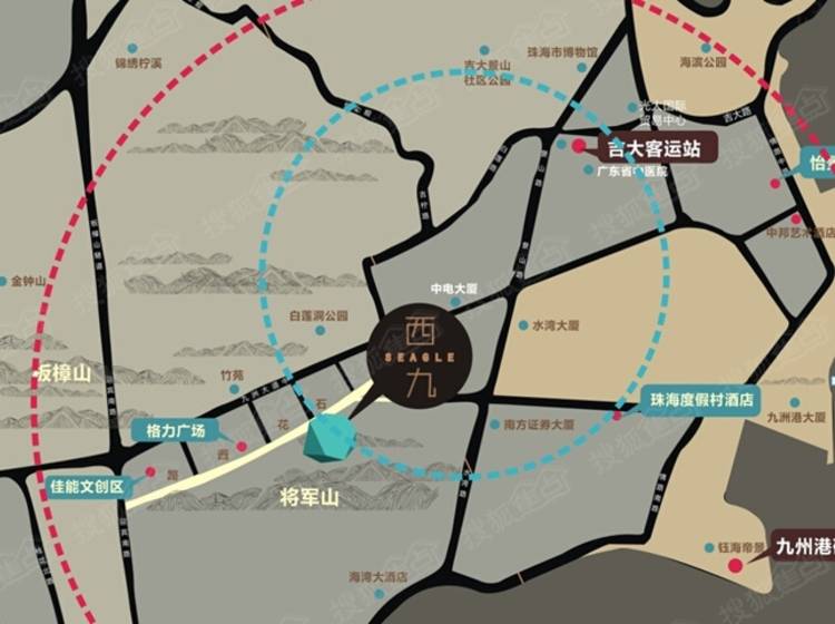 位于珠海主城区吉大及拱北相交合将军山片区的智汇西九,北望板障山山脉,南御将军山及无限海景。在与九洲大道平行的石花西路上,本项目距离拱北关口、度假村、九州港、港珠澳大桥拱北桥头等珠海口岸枢纽均很近。作为珠海老牌CBD吉大核心区域的新型写字楼,项目不仅尽享老牌都市中心丰富的商业配套和金融配套,更因有着与横琴、港澳毗邻的地缘关系,坐享着整个城市全面腾飞的资产升值前景。
