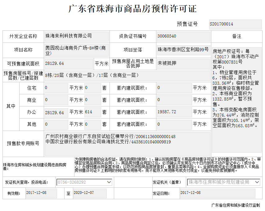- S201700014 详情发证时间 2017-12-08绑定楼栋8栋/25层(含商业一层)/17层(含商业一层)证件照片