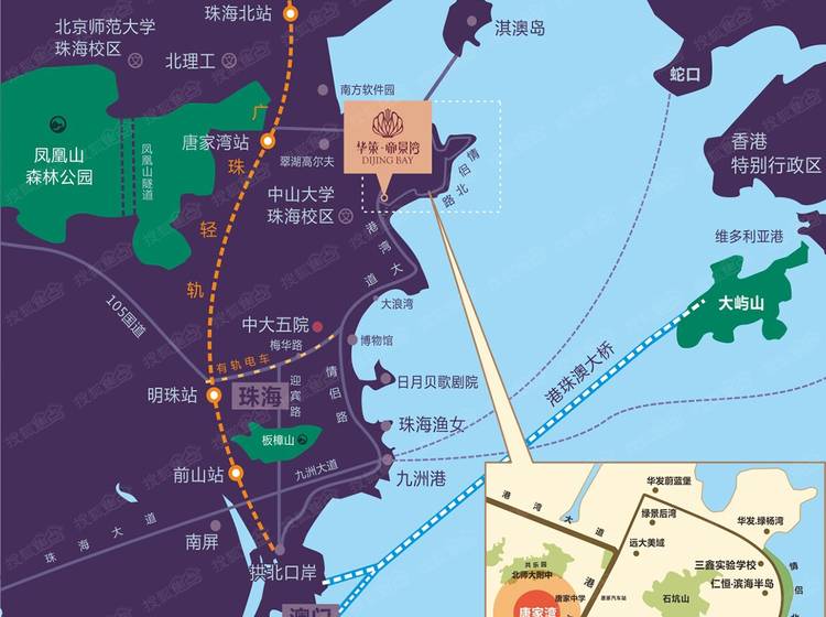 华策·帝景湾坐落在珠海唐家湾——的滨海城市板块,位于港湾大道和情侣北路交汇点,扼守着“滨海半岛”的主出入口。