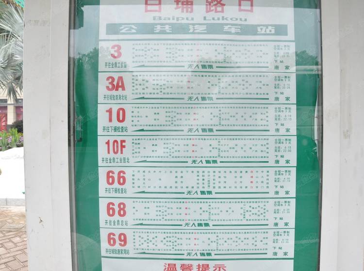 3a路;3路;10f;10路;66路;68路;69路;85路到白埔路口站下车。