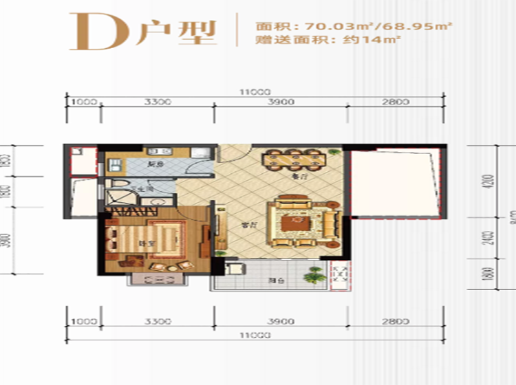 1室2厅1卫-2#、3#、5#、6#、7#、8#、9#楼D户型