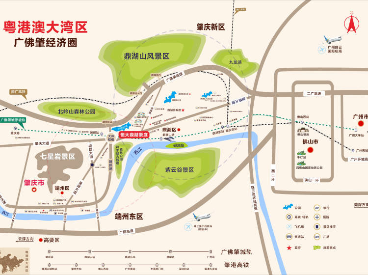 项目近享广佛肇轻轨——端州站,快速直达广州火车站;比邻肇庆东站,贵广高铁、南广高铁交汇于此,是珠三角西岸重要的交通枢纽,接驳全国高铁网;傲立肇庆大动脉—星湖大道,快速对接广佛肇高速,畅达珠三角,轻松乐享广佛肇同城生活。 周边公共交通: 项目近享广佛肇轻轨——端州站,快速直达广州火车站;比邻肇庆东站,贵广高铁、南广高铁交汇于此,是珠三角西岸重要的交通枢纽,接驳全国高铁网;傲立肇庆大动脉—星湖大道,快速对接广佛肇高速,畅达珠三角,轻松乐享广佛肇同城生活。