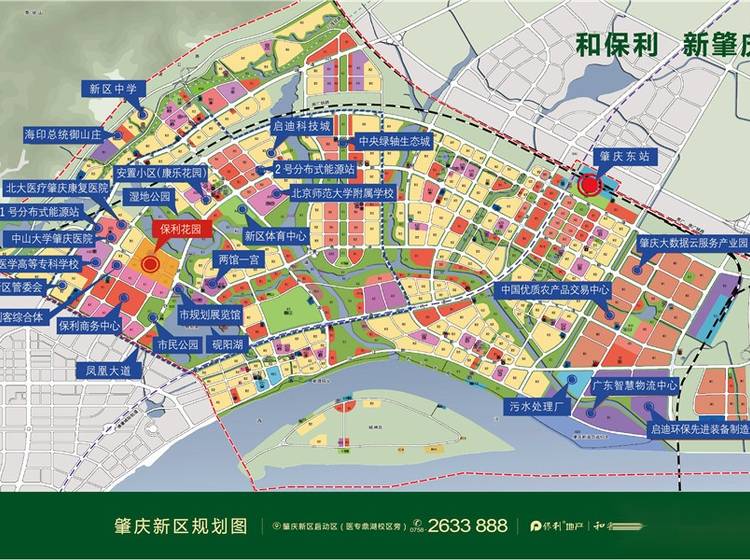 中小学 北师大附属学校、肇庆新区中学 大学 肇庆医科高等专科学校(鼎湖校区) 幼稚园 国际双语幼儿园 医院 中山大学肇庆医院、北大医疗肇庆康复医院 保利商务中心、创客综合体、市民公园、砚阳湖、两馆一宫、肇庆新区体育中心、肇庆东站等