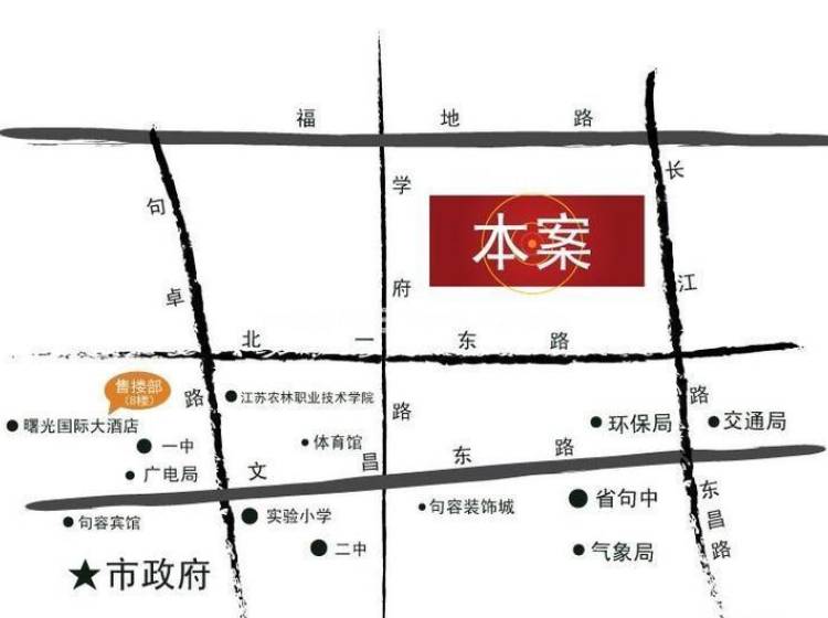 行政建筑:句容市行政办公中心、公安局、环保局、交通局、科技产业局、句容广电中心 学 校:江苏省句容高级中学、江苏农业职业技术学院、句容市第一中学、学府路小学 商业中心:曙光国际大酒店、银利国际购物广场、好又多超市 体育中心:句容市体育馆 内部配套:自带幼儿园、小学、商业街、会所等