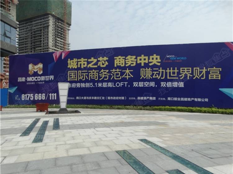 周口昌建MOCO新世界位于周口市东新区文昌大道南、东十六路北、东十一路西、东十三路东,总占地面积约200亩,总建筑面积54万㎡,项目紧邻周口市市委政府、周口市实验小学、幼儿园、广电中心、科教文化艺术中心、周口市公园、植物园、体育场、配套极为优越,将打造为高端住宅、繁华商业、精品酒店为一体的城市综合体。
