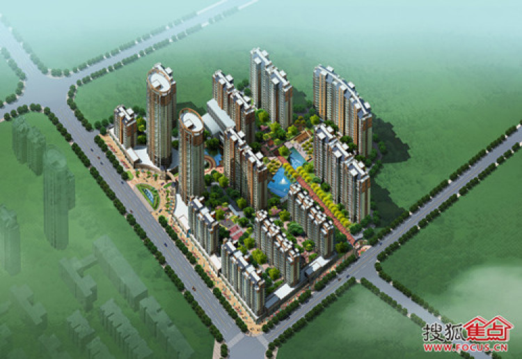 文昌新卷项目自西向东分为三个建筑组团“幸福花开”、“城市广场”、“金色东方”。