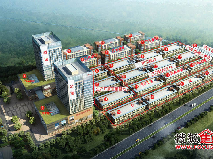 集品牌汽车展销中心、汽车行业会展、汽车超市、汽车装饰、汽车修理、汽车零配件批发零售、汽车配套服务、汽车手续办理、检测、物流仓储、售后服务、五星级酒店、3A级写字楼12大功能于一体的国际化汽车产业市场。