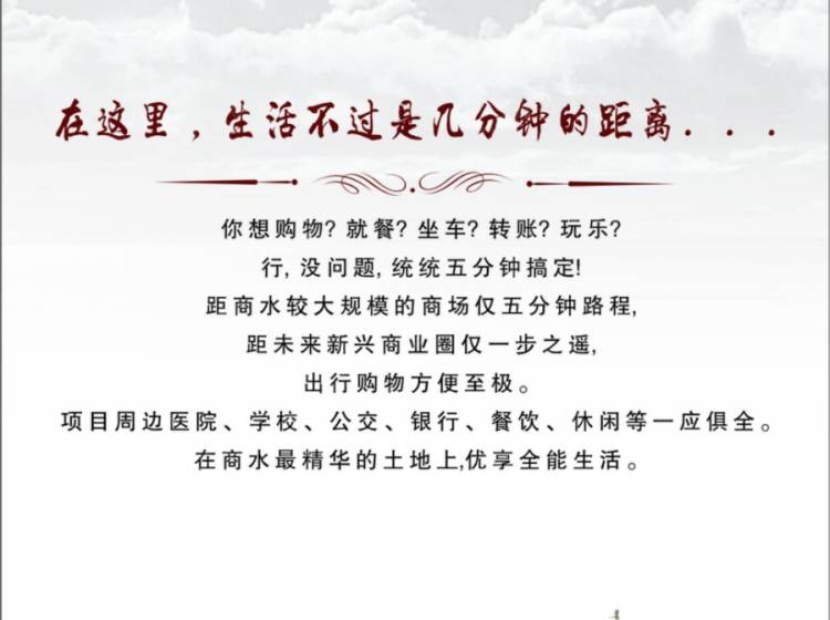 小区由6栋18层商水独有新中式古典建筑风格高层建筑组成,约500住户,高达35%绿化率、距离城市主干道--周商大道100米闹中取静、270°转角落地飘窗、全地下大型智能停车场,人车分流,矿泉直饮水入户,社区WiFi全覆盖,错落有致的建筑布局,保证每户通风、采光、视野的均好性。