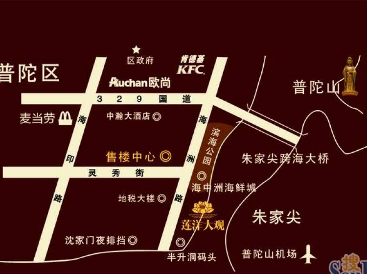 莲洋大观是宁波市海曙区和舟山市普陀区“山海协作”的项目。 莲洋大观,东临东海莲花洋,与旅游度假胜地朱家尖一桥相连。项目南临已建成的“外滩嘉园”小区,西临普陀区城市主干道海洲路,交通便捷。北临约6万平方米的海滨公园,环境优雅。 莲洋大观建设规模达18万平方米,由五幢高100米的大楼和商业裙楼组成,包括国际五星级大酒店、酒店式海景公寓、私家总统级泳池豪宅及商业。