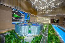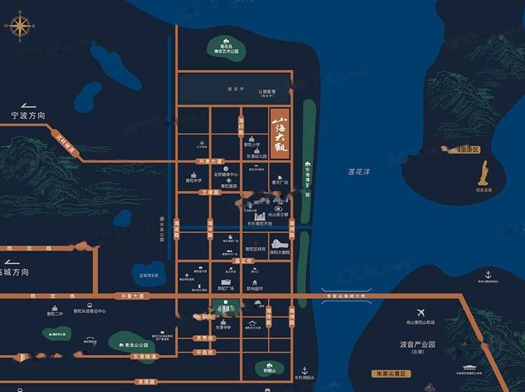 融创金成·山海大观位于舟山东港核心区域,项目东至海洲路,南至兴港大道,西至海印路,北至纬十三路,是目前东港 宜居、 发展 的核心区块。东港总用地面积11.7平方公里,其中东港城区用地6.8平方公里。共分为三期实施,全部建成将是沈家门旧城区的3倍。 项目总占地面积约14.6万方,总建筑面积约46万方,容积率约2.5,其中地上约34万方,地下约12万方。目前开发的是40—5地块(产权70年),占地面积约2.8万方,建筑面积约9.3万方。其中包含养老公寓约1.4万方,住宅5.3万方,地下面积约2.2万方(余下约0.4万方是商业和配套用房)。整体建筑布局较为对称,由4栋26层、1栋22层住宅以及一栋养老公寓组成,高层住宅总户数483户,两梯四户,自持旅居型养老公寓264户,住宅部分车位配比约1:1,绿地率25%,项目将打造成为融创“归心社区”在舟山的 落地项目。