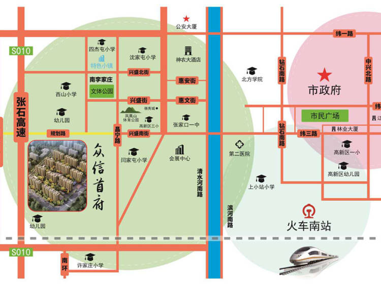 众信首府由张家口众信房开斥资7亿元倾力打造的纯住宅小区,项目位于西山产业区,南至110国道,西临张石高速700米,北依沈孔路,交通便利。小区由11栋11层小高层组成,总建面约12万平,户型均为南北通透的H户型,面积区间85-113平。