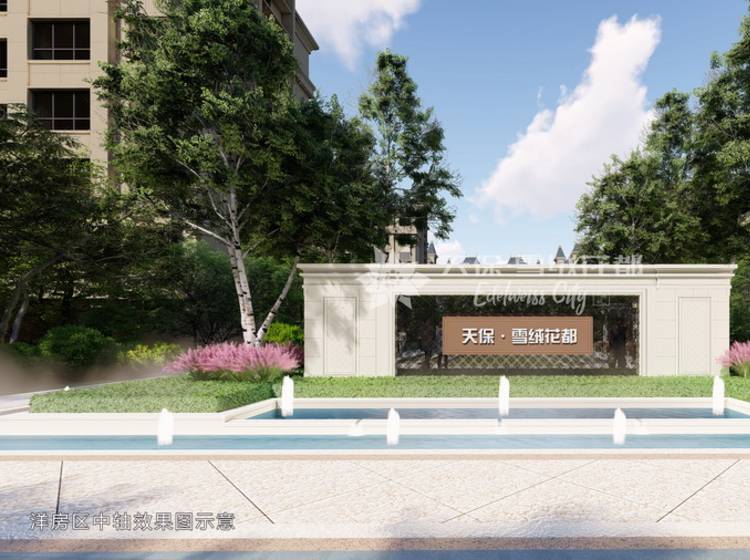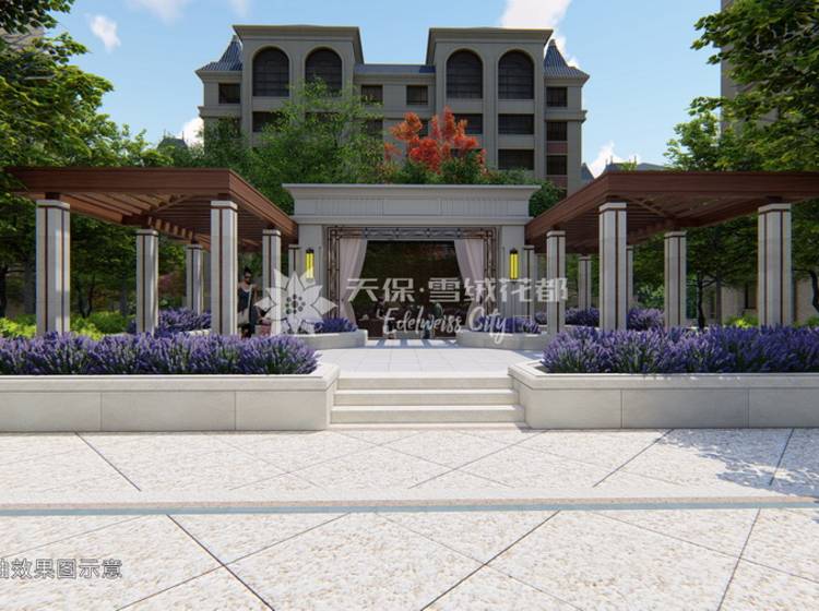 小区整体采用法式建筑风格,浪漫的法式风情建筑,结合法式优雅景致,彰显主人高雅品味和精致审美情趣;
