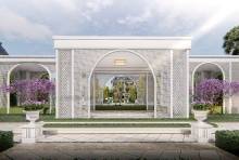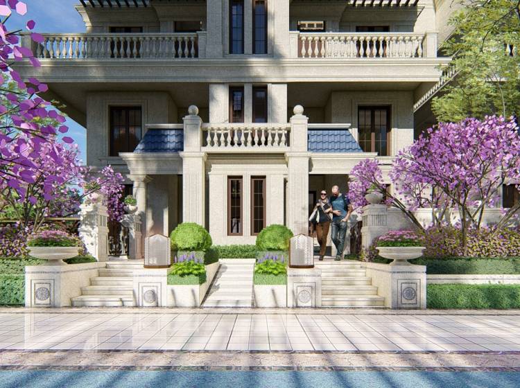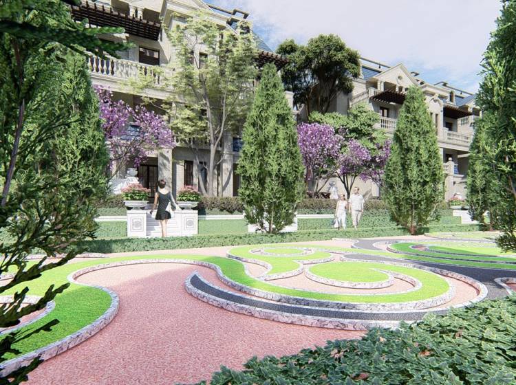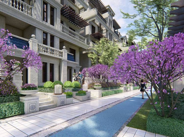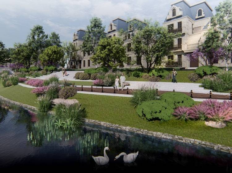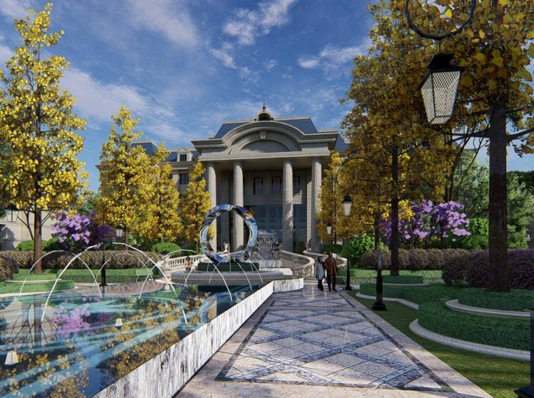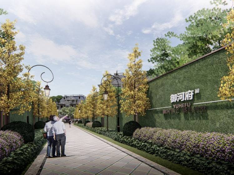 御河府项目由清华大学建筑设计研究院设计,以6层叠拼、4层双拼及联排别墅、类独栋别墅组成。小区整体建筑风格采用精典法式巴洛克建筑风格,经典与时尚共存,体现精致、优雅的生活方式,营造浪漫、奢华、色彩丰富但却合理舒适的居住体验,在整体法式氛围的基础上,追求近人尺度细腻温馨,经久耐看,塑造尊享品质大宅。小区内设有独立高档会所,建筑面积达9000多平米,由精品超市、私人泳池、健身会馆、精品中西式餐饮、社区医务站、老年活动中心、老人日间照顾中心、和文化活动中心、社区综合服务站等服务设施组成。紧邻会所南边是4000多平米的独立幼儿园,幼儿园中孩子们的活动设施及活动场地一应俱全。小区环境也非常有特色,经典法式设计重点打造入口中轴线及住宅之间的景观共享空间,形成超大尺度的“一带一轴一核心”。在景观设计上以空间为主导,景观与建筑物相协调,种植精美植被,设置喷泉景观,结合微地形设计,一步一景,创造层次分明的开放空间景观系统,中心景观带的设计风格呼应法式建筑的氛围,通过植物精致小品及水系,打造休闲放松富有灵动生命气息的生活体验。典雅型风格使居住者情感回归于宁静与自然,设计中始终以“人居”为基础点,追求居住的舒适度与品位,将以人为本,科学居住,健康生活贯穿设计的全过程。