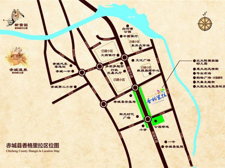 香格里拉位于赤城中心街霞城大道东侧,南邻县医院和在建的县一中,西对已经完善成熟全部入住的阳光小区,北临就业服务中心和文化广场,由此可见,位于新城区的中心地带,不久的将来新城全部投入使用时,比如医院学校市场银行等等,可以满足日常生活所需。而且咱们小区也是赤城的重点招商引资项目,将会成为较高端的城市综合体,配套设施完善,交通路网发达会使小区成为赤城的住宅标杆。