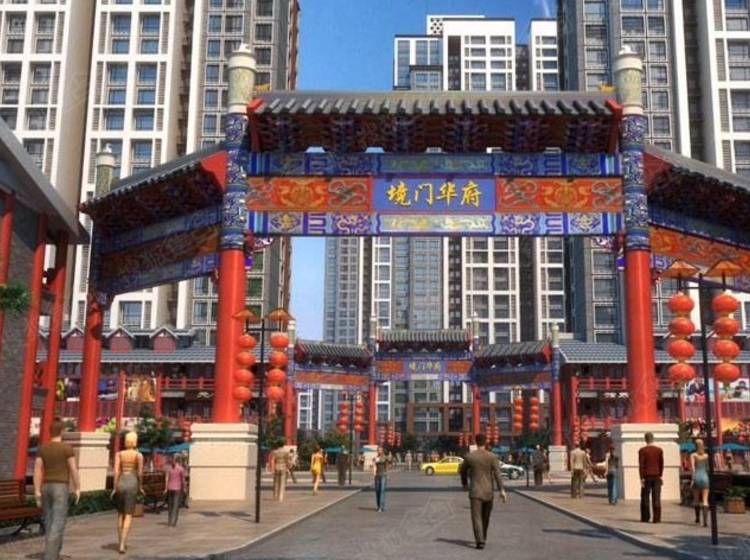 境门华府项目总体规划,方位是上北下南,左西右东,项目是由河北宏鑫房地产公司开发并建设,集高档住宅、大型商业、幼儿园、市重点小学于一体的大型高品质宜居社区,项目共分为两期,一期工程为花巷大街以北区域,东至清水河北路,南至花巷大街,西至明德北路,北至北外环,二期工程为花巷大街以南区域,总占地243亩,总建筑面积约50万平方米,由23栋高层住宅和大规模商业街组成。