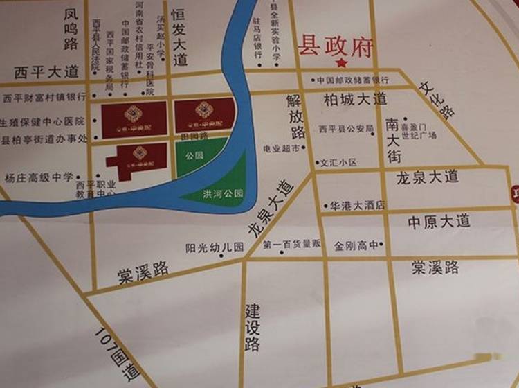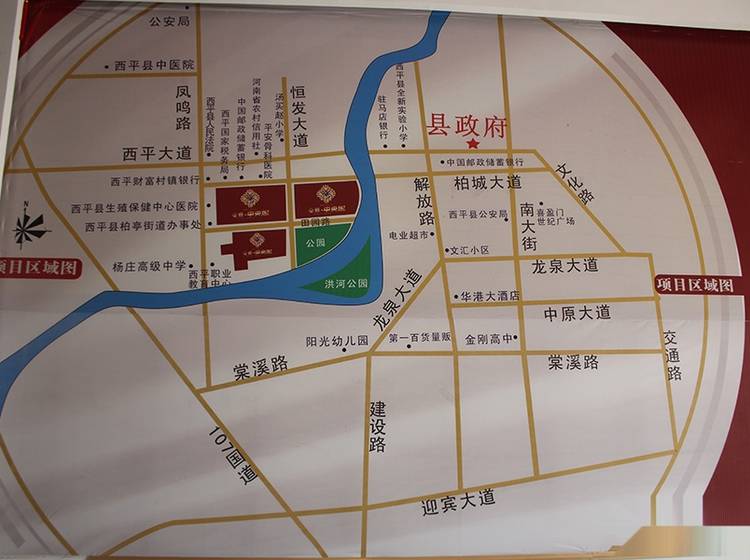顶品百货 汤买赵菜市场 杨庄高中、全新实验小学 西平中医院 社区门诊、双语幼儿园