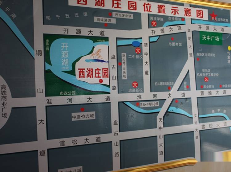 西湖庄园是由驻马店春城置业开发有限公司投资开发建设的高档住区。项目位于铜山大道与置地大道交叉口东北角,尊踞驻马店城市西城新区高铁站核心区域,距高铁站仅800米,为驻马店市“西移北扩”发展规划下的核心区域。西湖庄园一路之隔的便是驻马店的综合交通枢纽,市内公交、郊区公交、高速铁路、出租车四种交通形式无缝对接。置地大道、开源大道、铜山大道城市主干道擦身而过,直通京港澳高速公路、新泌高速出入口环伺左右,区位优势不言而喻。西临高铁站站前商圈,东依驻马店城市核心教育片区,地高、黄淮学院、实验小学……环伺,北望市政府政务区,南近老城区,是片区规划的依据新中心。 西湖庄园独揽垄断性景观资源,为项目亮点。西湖庄园由小清河与开源河围合而成,三面环水,形成独特半岛地貌;坐拥近百亩小清河、开源河之眼——开源湖;300亩市政湿地公园,分列河岸两侧;住区40%的绿化率;这些构筑成了天中独特景观 “双河一湖三园”,目前垄断性的景观特性已出露端倪, 天中半岛假日生活,即将荣耀登场。 西湖庄园占地50余亩,总建面积13万平方米,由1栋公寓楼、9栋住宅楼组合而成。社区规划以围合式社区为蓝本,实现了在1/5的土地上建造房子,尽可能的满足社区绿化,形成了社区中间大面的绿化景观中心,与外部景观呼应、融合。一期46㎡—220㎡全新水岸华宅,旨在打造西区高铁中心地标建筑!西湖庄园,为天中丰面而来!