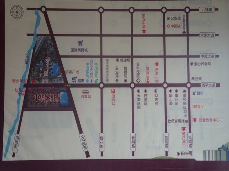 国际商贸城 杨庄高中、西平第五中学 西平县中医院 儿童乐园、老年活动场、商业步行街、会所、医院