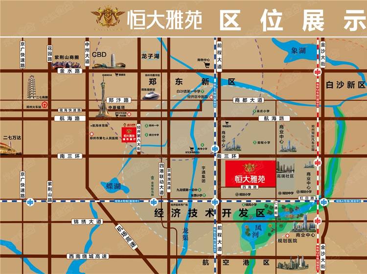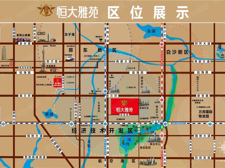 郑州恒大雅苑是由世界500强恒大集团打造的品质居所,项目位于南三环(新安路)与前程大道交叉口向东50米,交通四通八达,周边有南三环、前程大道、航海路、四港联动大道等多条城市主干道。项目占地面积约65亩,总建筑面积约13万方。