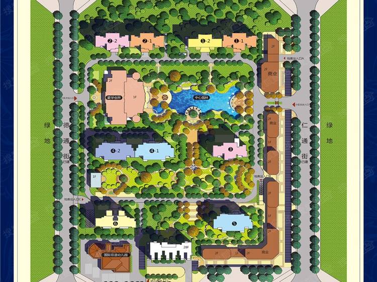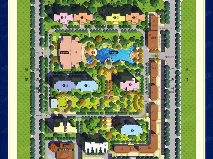 会所(室内恒温游泳池、儿童游乐中心、舞蹈室、红酒雪茄吧),商业街、幼儿园。