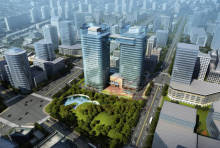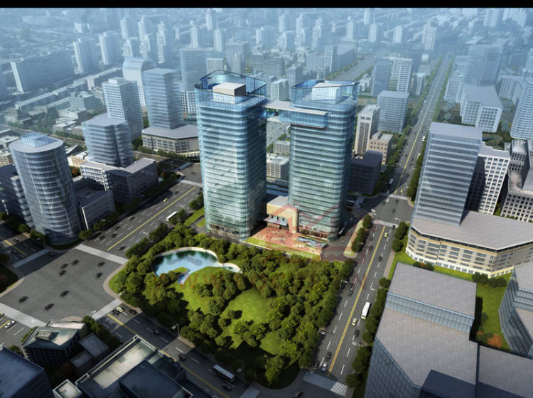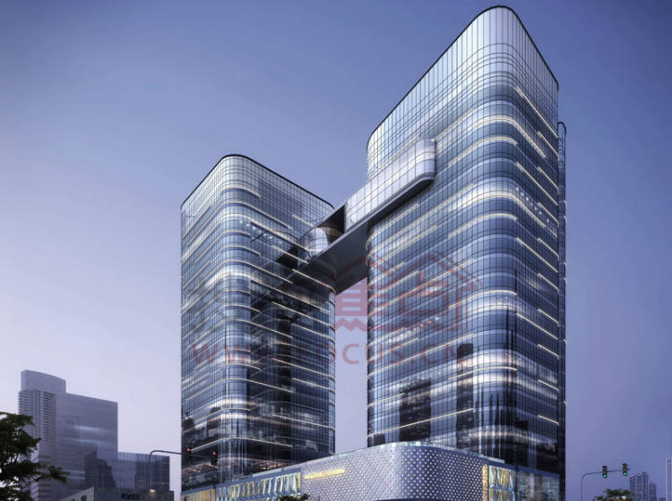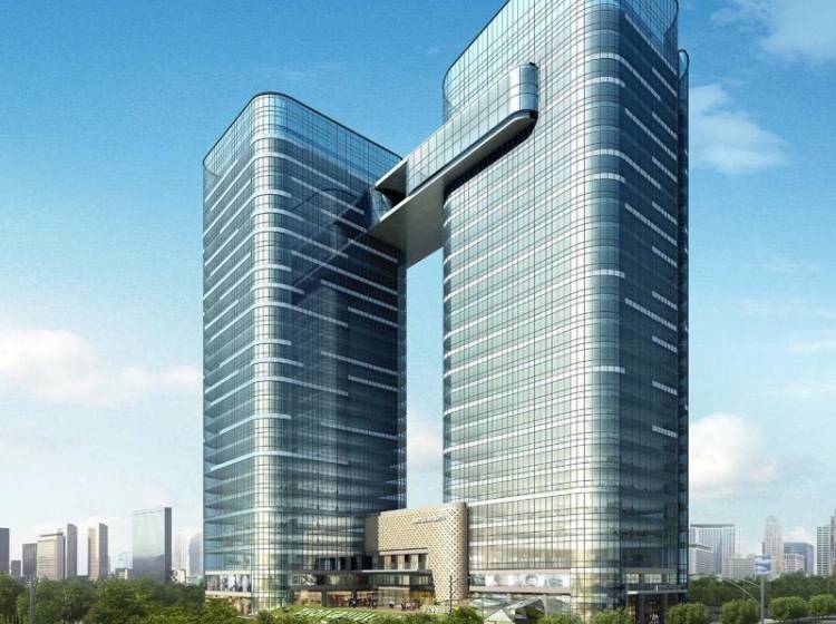 120米地标高度、10万平米国际商务空间;上上国际中心近3000平米国际化豪华大堂、挑高逾20米恢宏中庭,独设总裁boss电梯;无柱空间自由分割,办公空间大。两座百米塔楼组成双子巨座, 外立面采用LOW-E玻璃幕墙,顶部旋转而上玻璃构架提升建筑动感。