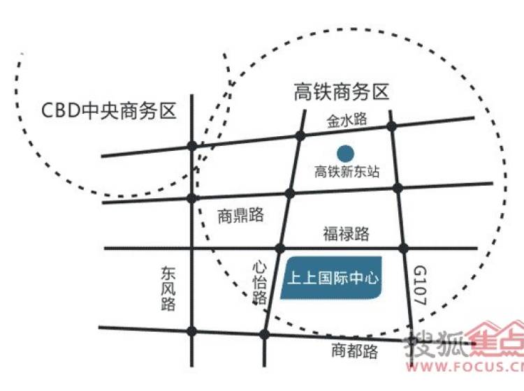 上上国际中心位于郑东新区心怡路与福禄路交汇处东南角,距位于高铁西出站口南1.5公里,东临和谐路,西临心怡路,北侧为福禄路,南接20亩市政绿地。上上国际中心是由上上集团投资兴建的以办公为核心,集商业、金融、会议、服务业为一体的综合性项目。