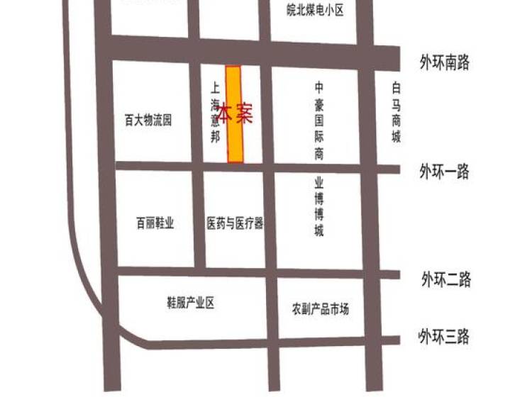 项目工程位于安徽省宿州经济开发区靠近高速路附近位置,处于宿州市南部建材、五金、汽配等产业的物流带,北连市区,高速公路对内辐射全省,对外连霍、泗许、京台高速;基地北面为外环南路,南侧为外环一路,东临“中豪国际商业博览城”,地块东西长97.6米,南北长526米的平行四边形,地形平坦。项目建设用地面积51357.8平方米。