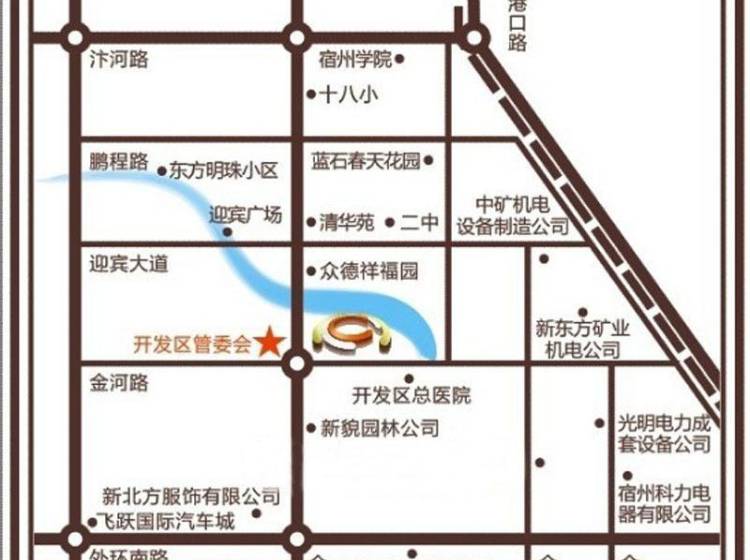 学校(学区): 十二小、十八小、新二中 综合商场: 易初莲花超市、润东购物广场、菜场 邮 局:中国邮政宿怀路分局 银 行:中国人民银行 幼儿园:宿州市南方国际幼儿园 宿州市天乐祥福幼儿园 医 院:皖北总医院 休闲娱乐场所:滨河一条街、龙河公园 餐厅:德龙大酒店、金港海鲜楼 胜世怡致西餐厅 其他:皖北书城、维多利亚洗浴中心、五星国际大酒店、 停车场、物业管理、商业、饮食服务、办公公寓 国际大卖场