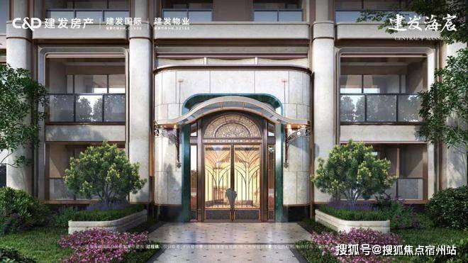 项目大门口标配的铜狮庄严中透出几分摩登腔调。主入口的铜艺精雕大门上,建发特别邀请了百年品牌“老凤祥”掐丝珐琅非遗大师陈徐奇,以掐丝珐琅工艺打造门钹,精致典雅。门厅以上海的标志白玉兰为造型,勾勒出摩登与飘逸并存的气质。环抱式落客区灵感来自意大利许愿池,细看池底却铺陈龙鳞祥纹,含蓄传递东方祥瑞。