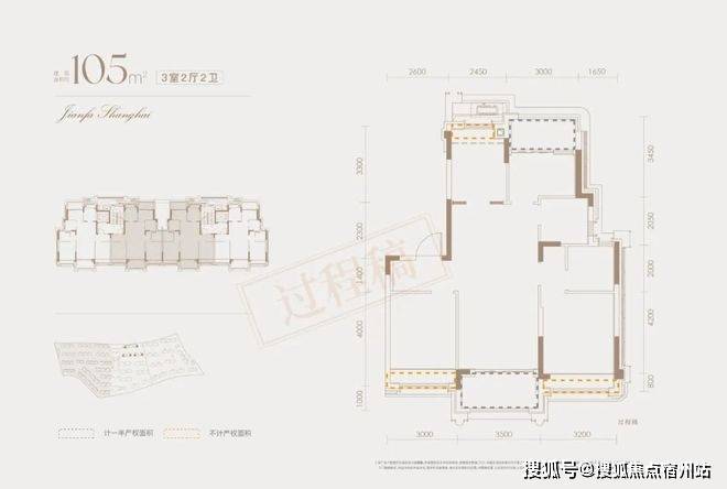 经过专业建筑师测算,该户型的客厅南向开间达到3.9米,入户门到公卫的距离足足5.35米。