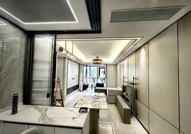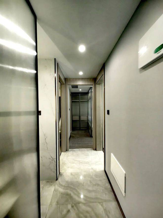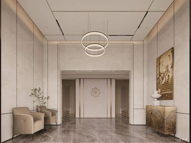 首层入户大堂,石材搭配金属装饰条的地面、墙面,空间宽敞气派,质感十足。☑️☑️永泰三里城售楼处电话:400 - 8377 - 020☑️☑️