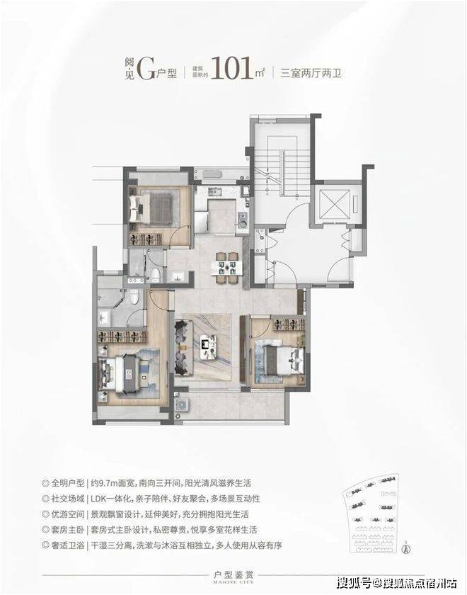 特别是这个E户型,建面仅约90㎡,✅✅华发虹桥四季售楼处电话:400 - 8824 - 258✅✅对于想住叠加但预算有限的购房者来说,面宽约6.45米,上下动静分离带,是个不错的选择!