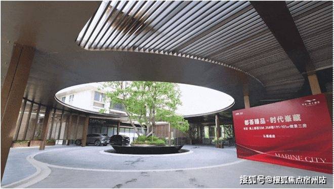 华发·海上都荟的主入口做了环岛式酒店大堂设计✅✅华发虹桥四季售楼处电话:400 - 8824 - 258✅✅,风雨回廊在天气炎热或者下雨天时让人更舒适,融合了酒店的精致感、艺术感,给人仪式感的入户体验。