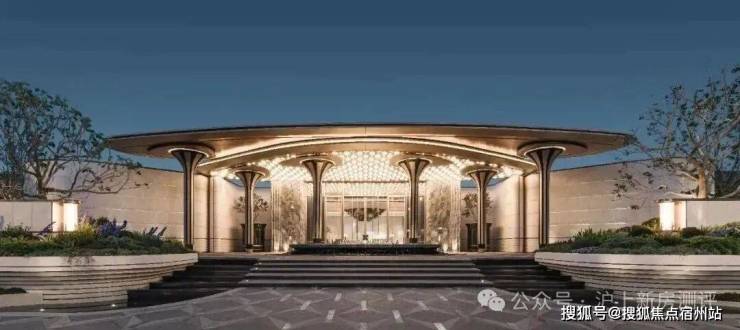 项目恢弘大气的门头,项目设计师以浮岛为灵感,将几根立柱化作悬浮的雕塑,撑起一片轻盈的仪式感。