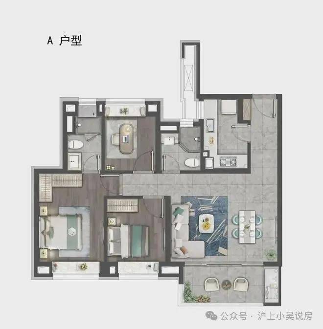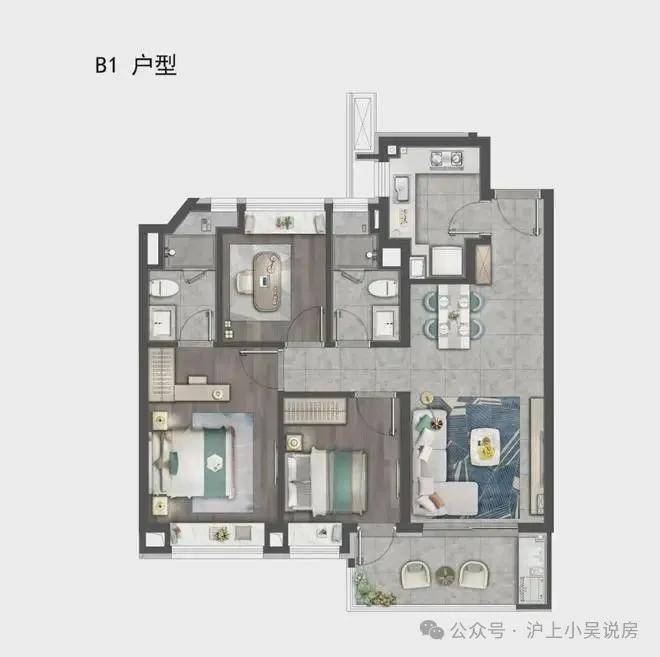 建筑方面,虹桥嘉悦府汲取高级灰经典美学灵感,以珍珠蓝石材、多彩仿石漆、深灰色铝板搭配宽幕玻璃,整体呈现玻璃流幕现代立面,经典永不过时。