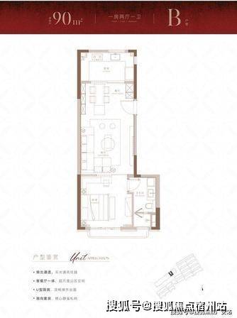 1. 建面约 90㎡ 1 房 2 厅 1 卫(B 户型)