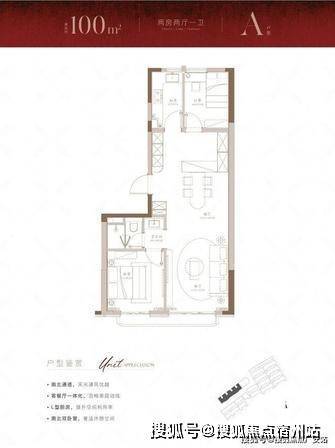 2. 建面约 100㎡ 2 房 2 厅 1 卫(A 户型)