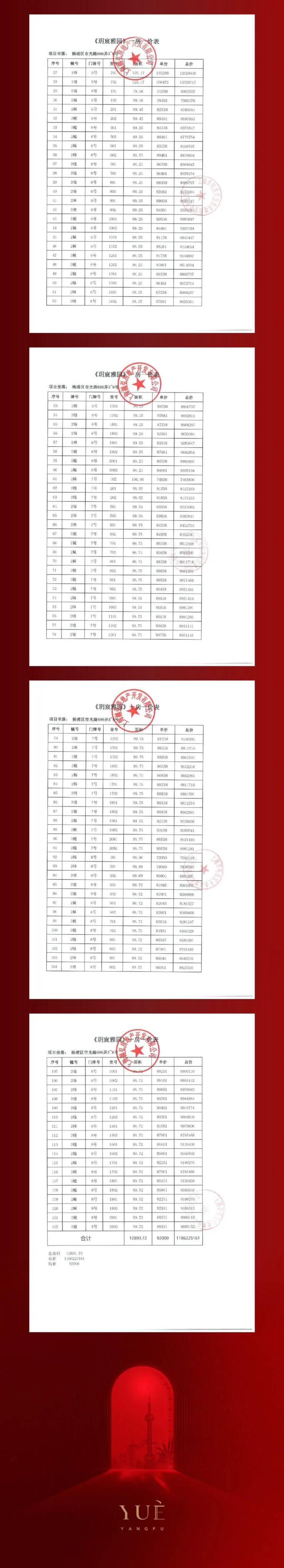 一房一价表如下
