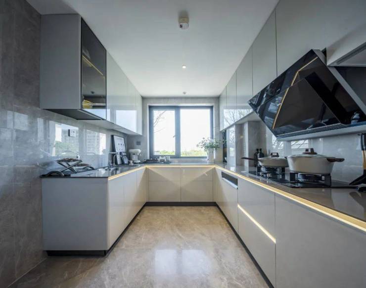 U型厨房:厨房采用U型布局,并巧妙融入飘窗元素,拓宽视野同时增添休闲氛围。☑️☑️张江金茂府售楼处电话:400 - 8377 - 020☑️☑️