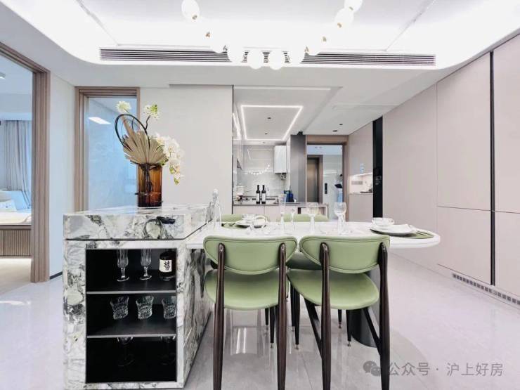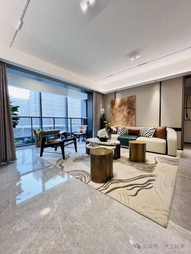 像空调新风地暖“豪宅三大件”齐备,比如中央空调甄选东芝品牌;厨具方面,采用方太的蒸烤一体机、空调油烟机,内嵌冰箱甄选卡萨帝品牌;客厅岩板背景墙也是交付标准;