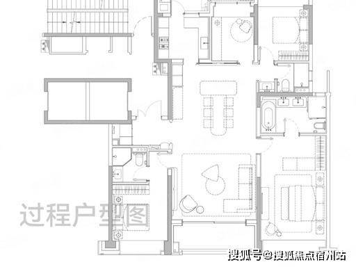 185㎡四房两厅三卫 ,经典 “飞机户型”, 2 梯 2 户私享电梯厅 ,独立玄关设计,私密性强;LDKB(客餐厅 + 厨房 + 阳台)一体化通透格局,南向面宽超 12 米, 5 米横厅 连通观景阳台,空间开阔敞亮,采光通风极佳。户型采用 “ 四叶草布局 ”,四个房间分布在户型四角,动静分区清晰,零浪费空间; 南向双套房设计 ,主卧朝南带独立卫浴(双台盆、浴缸、淋浴)、步入式衣帽间与观景飘窗,次卧朝南带独立卫浴,兼顾家人隐私与舒适;北侧两个房间可作为书房、儿童房或客房,功能灵活多变。