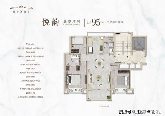 洋房由于楼层低、无连廊等优势,所以得房率天然要比高层更高。而同悦湾璟庭洋房的得房率更是高达约80%,虽然是建面约95㎡的3房2卫户型,但其实际的尺度感、套内使用空间,比一般的建面约100-110㎡高层户型更加宽绰。