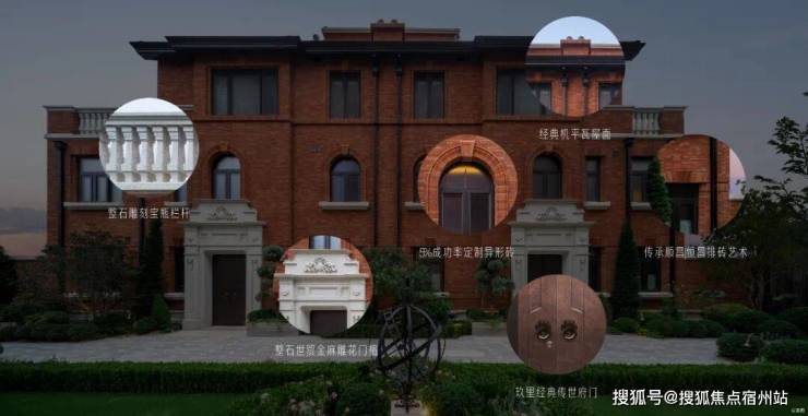 同款砖艺与屋面瓦材,随处可见天然石材整石雕刻工艺,新一代玖里系水岸风貌作品